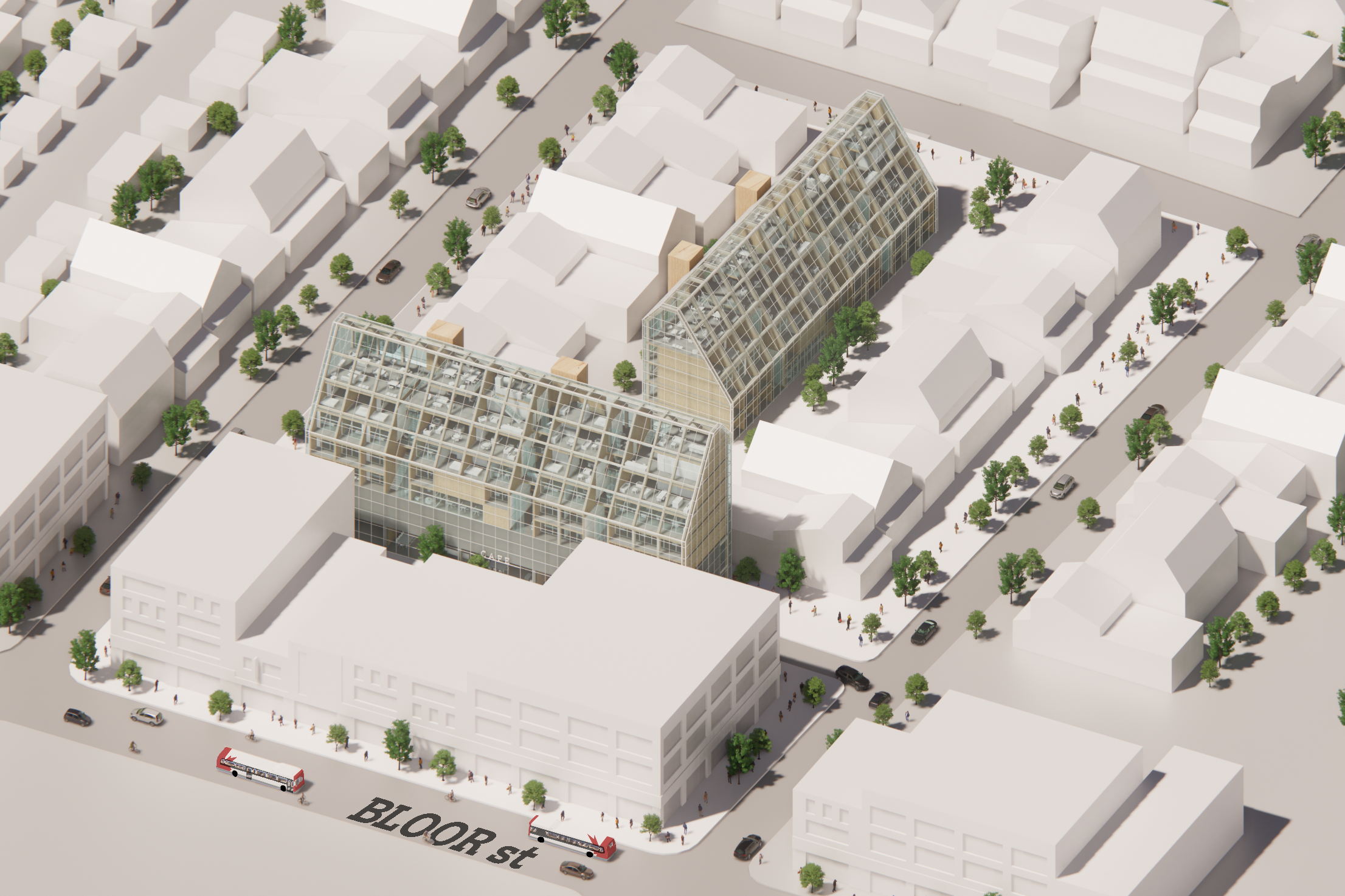 TO10 is a housing competition proposal to provide Toronto with much needed affordable dwellings by grafting additional building blocks on the city’s existing fabric. The project reclaims the residual space at the rear of commercial strips and in between rows of residential blocks. The proposed locations capitalize access to existing services, commerce, and transit.